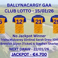 Play our club lotto before 7pm on Thursday 19th December to be in with a chance of winning this weeks jackpot, a whopping €7,500.