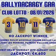 ππ Ballynacargy GAA Lotto Results ππβThursday, 8th Jan...
